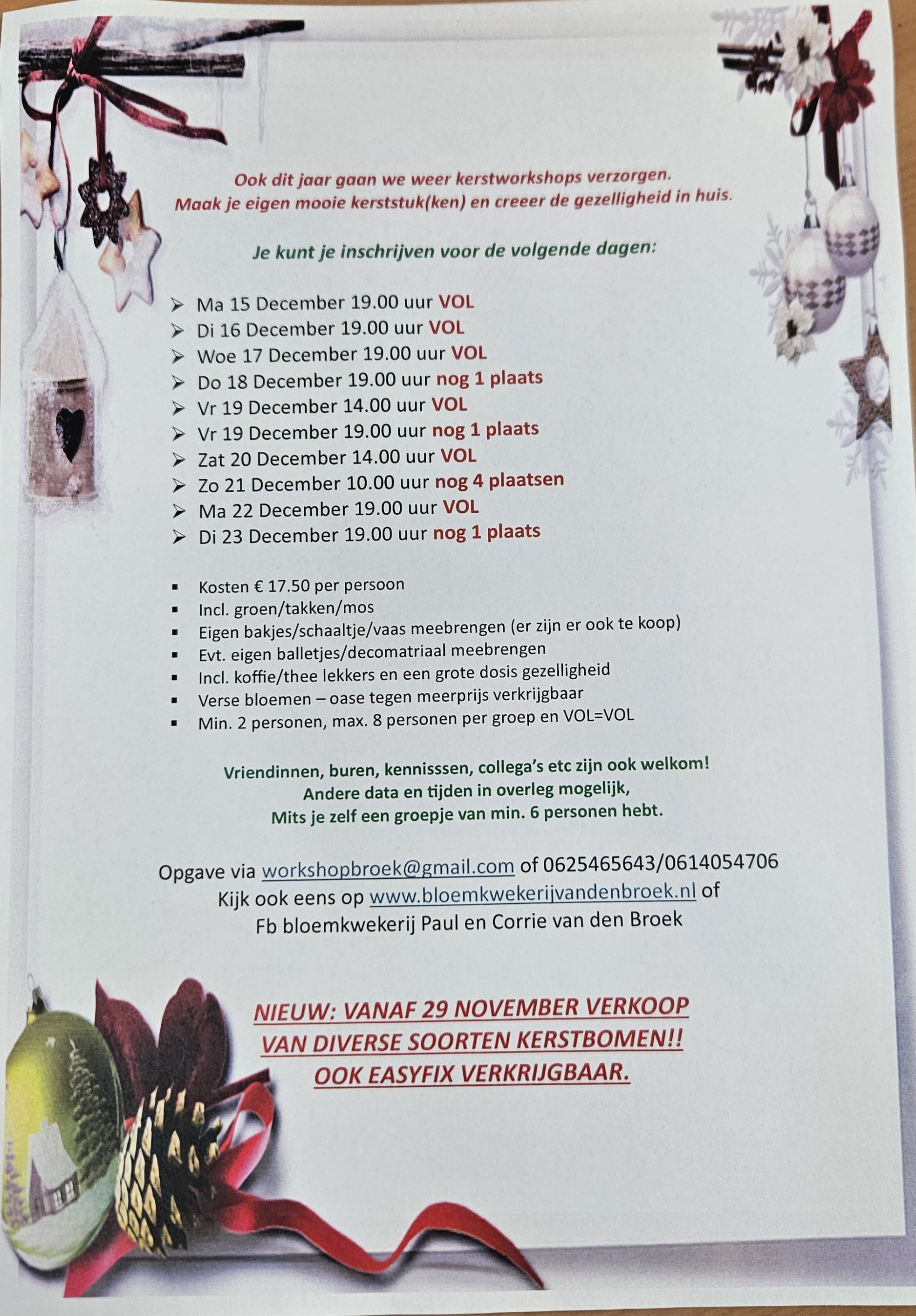 Kom gezellig naar 1 van de workshops...Schrijf je snel in want VOL=VOL