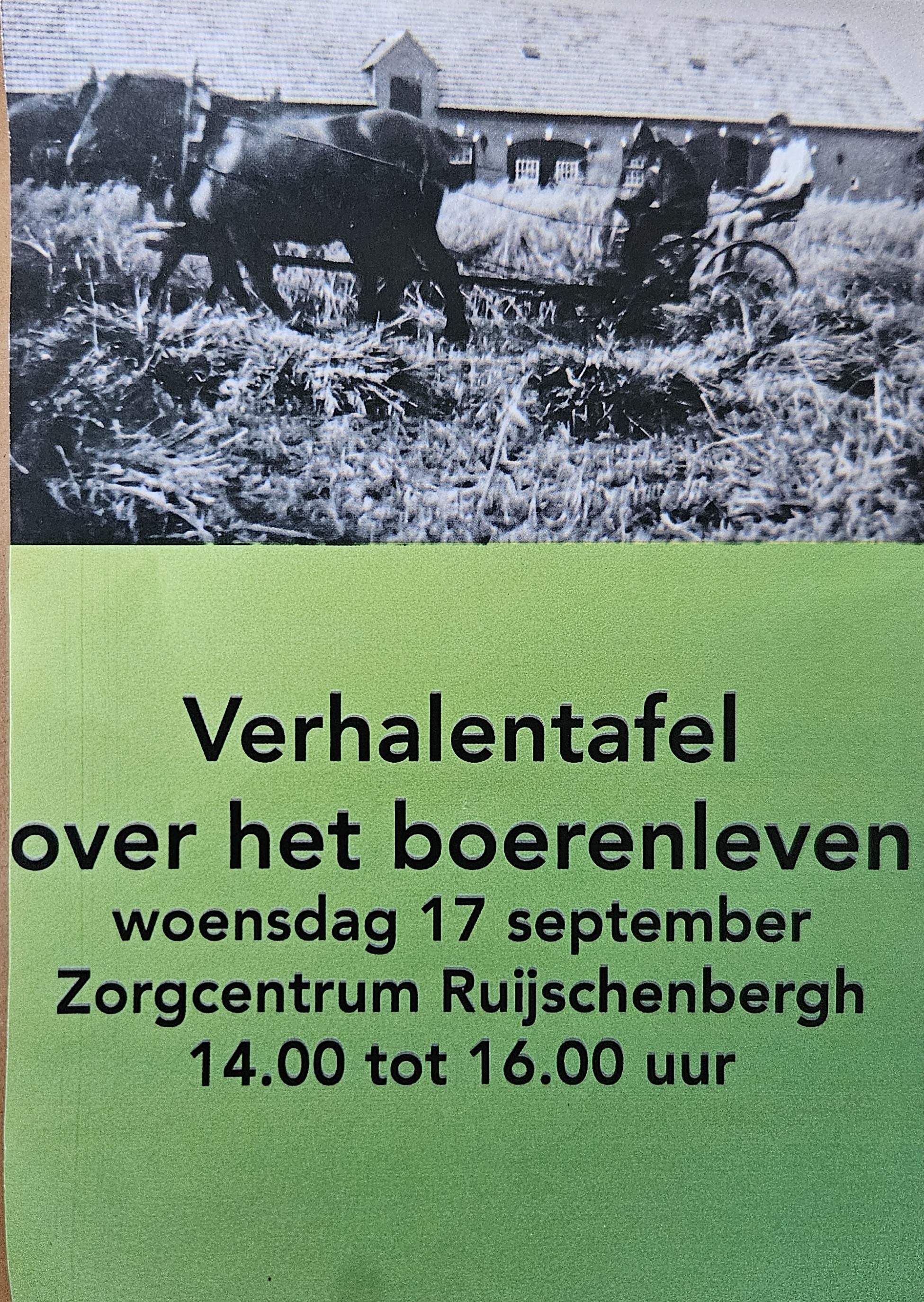 wilde nemen aan een tafelgesprek over het boerenleven vroeger,